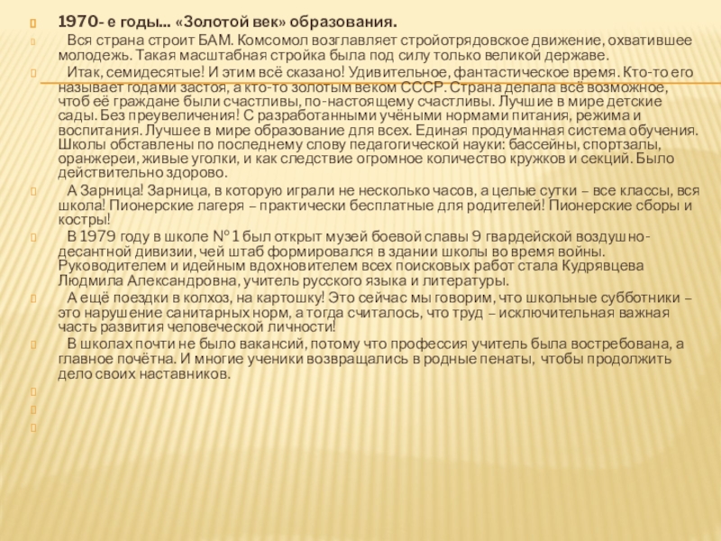 В школах почти не было вакансий, потому что профессия учитель была востребована, а главное почётна. И многие ученики возвращались в родные пенаты, чтобы продолжить дело своих наставников.