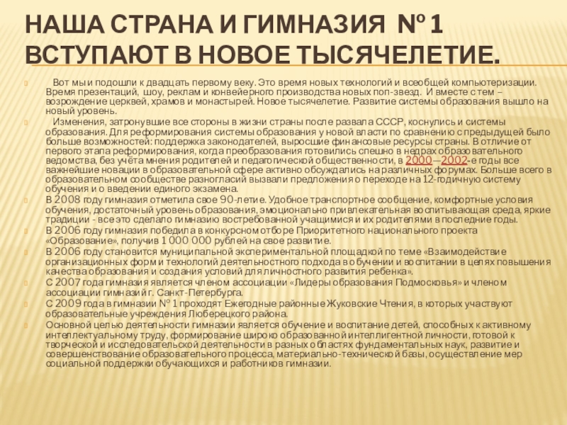Слайд 25Наша страна и гимназия № 1 вступают в новое тысячелетие.
