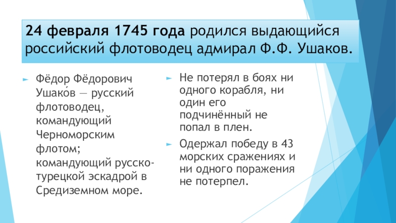 Одержал победу в 43 морских сражениях и ни одного поражения не потерпел.
