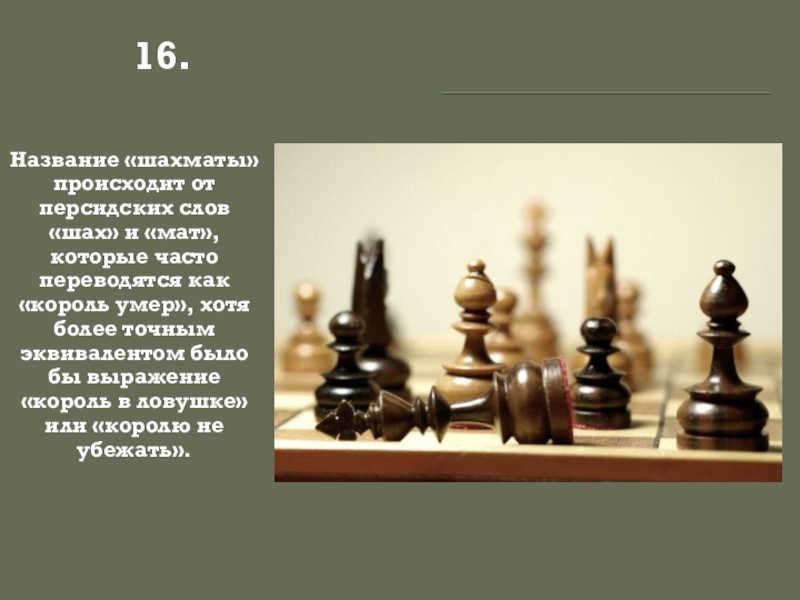 Название «шахматы» происходит от персидских слов «шах» и «мат», которые часто