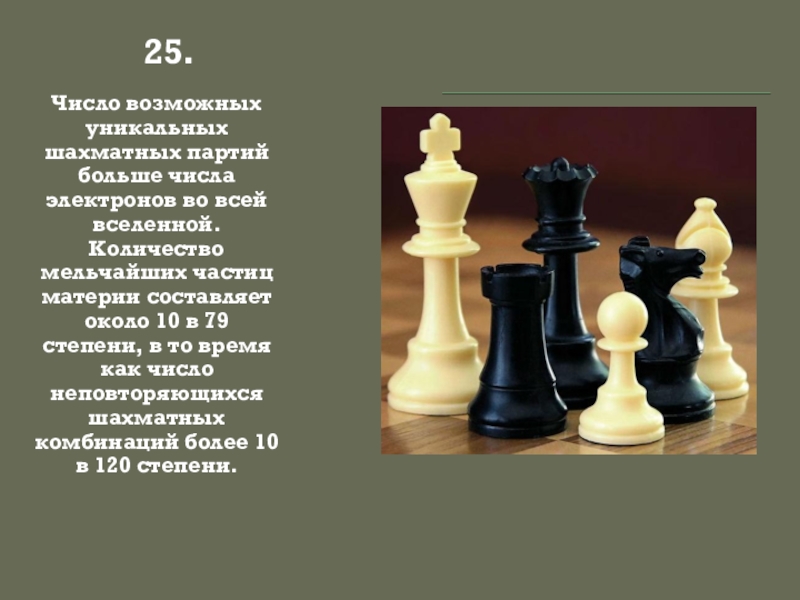 Число возможных уникальных шахматных партий больше числа электронов во всей вселенной.