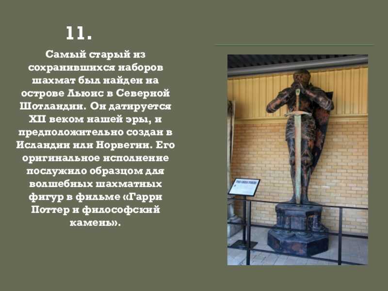 в Северной Шотландии. Он датируется XII веком нашей эры, и предположительно создан в Исландии или Норвегии. Его оригинальное исполнение послужило образцом для волшебных шахматных фигур в фильме «Гарри Поттер и философский камень».