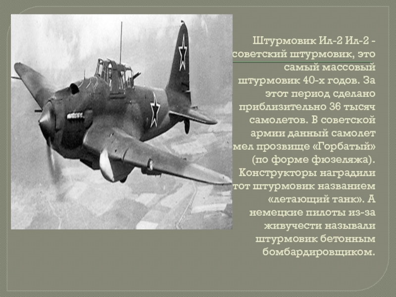 Слайд 13Штурмовик Ил-2 Ил-2 - советский штурмовик, это самый массовый штурмовик 40-х
