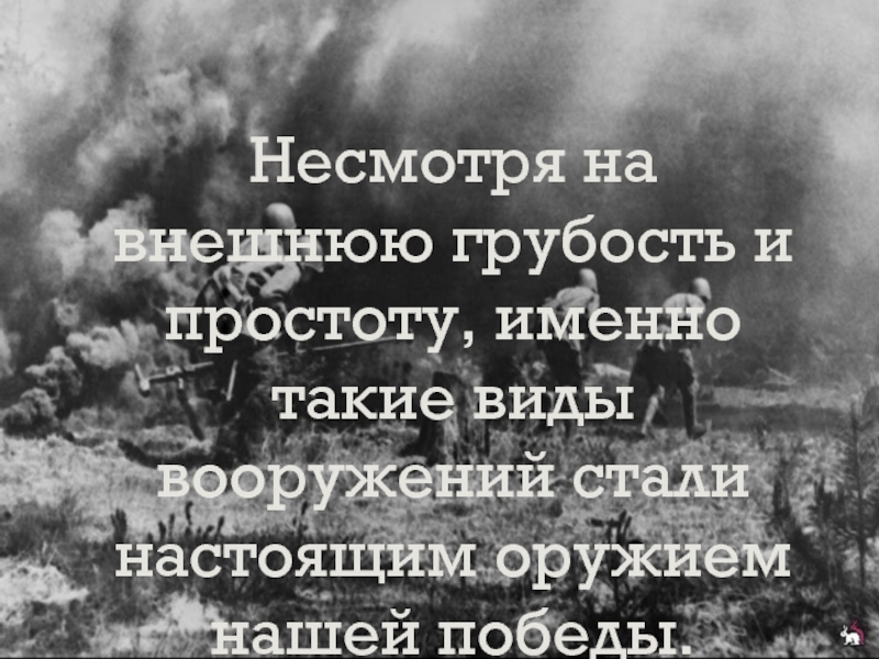 Слайд 16Несмотря на внешнюю грубость и простоту, именно такие виды вооружений стали