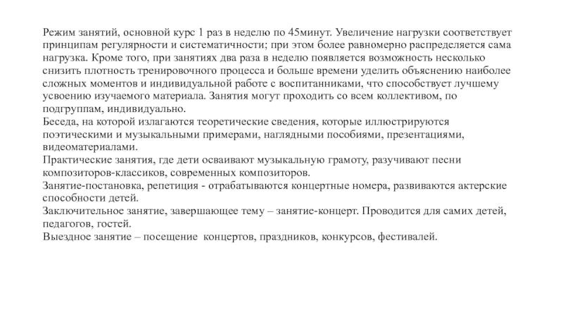 Слайд 5Режим занятий, основной курс 1 раз в неделю по 45минут. Увеличение