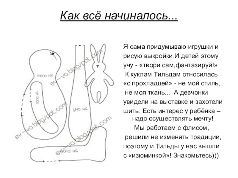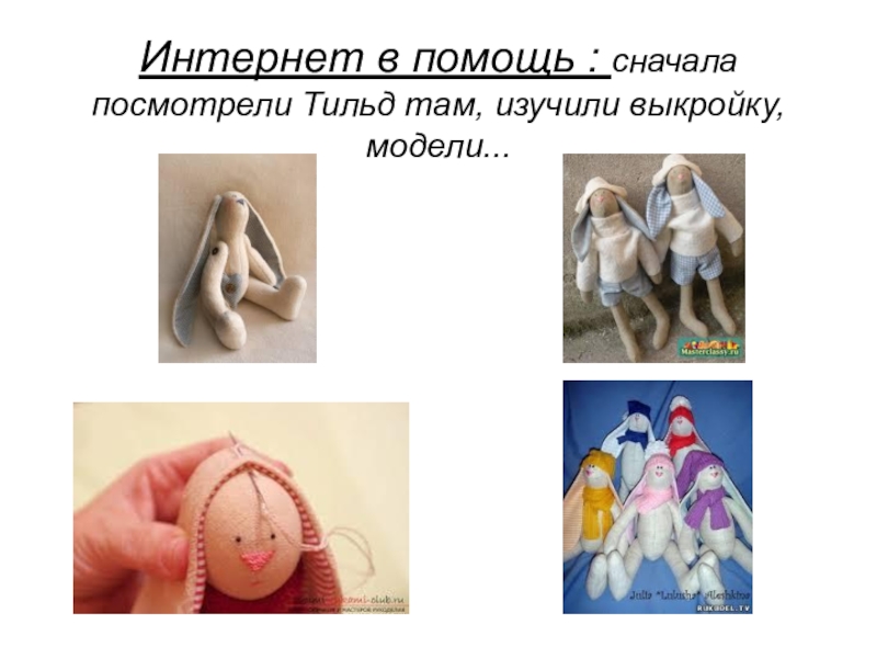 Слайд 3Интернет в помощь : сначала посмотрели Тильд там, изучили выкройку, модели...