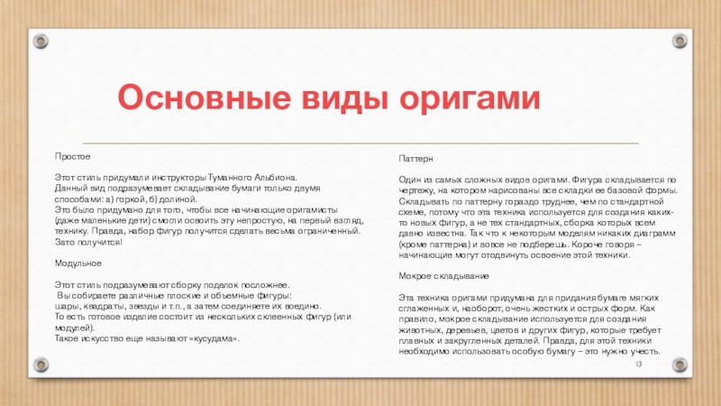 Основные виды оригами