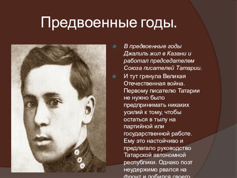 В предвоенные годы Джалиль жил в Казани и работал председателем