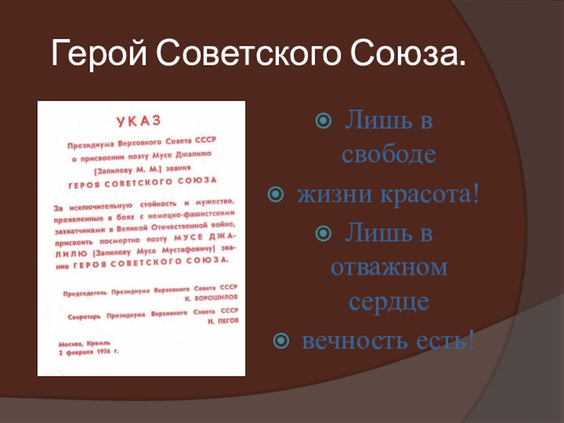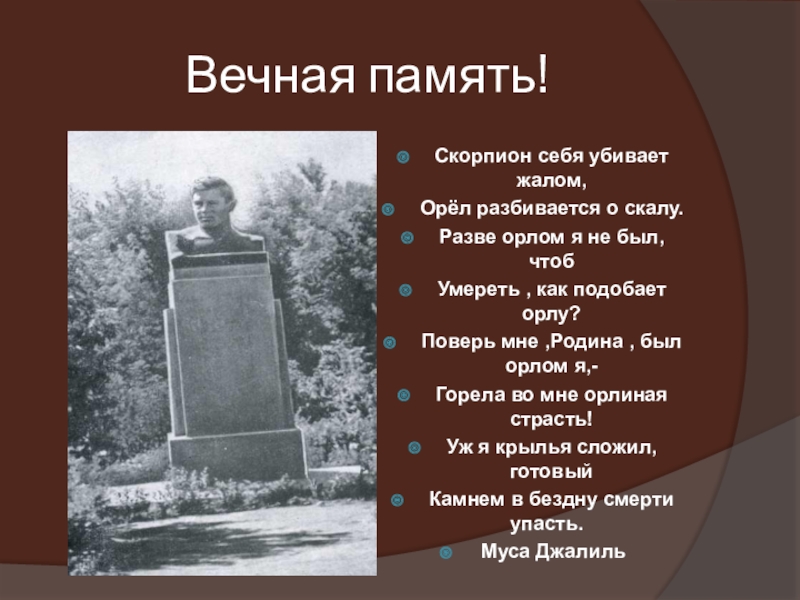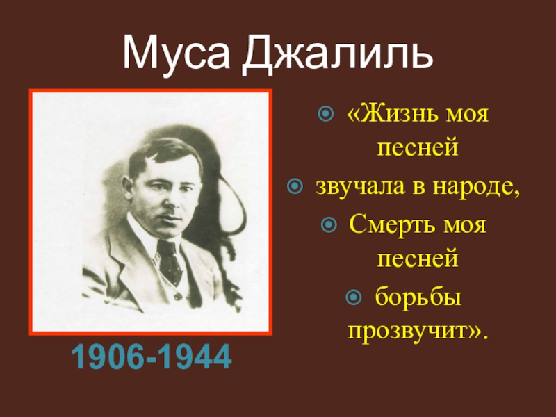 Слайд 1Бессмертный подвиг татарского поэта Мусы Джалиля