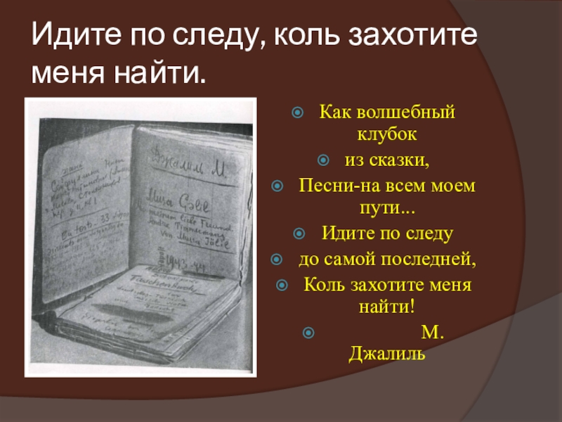 Слайд 7Идите по следу, коль захотите меня найти.