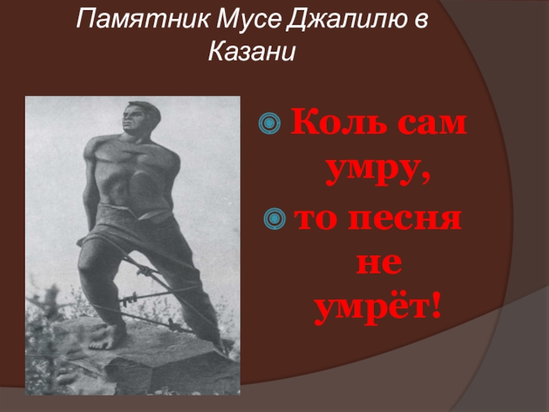 Слайд 30Памятник Мусе Джалилю в Казани