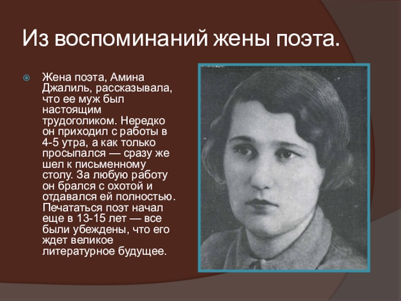 Слайд 13Из воспоминаний жены поэта.