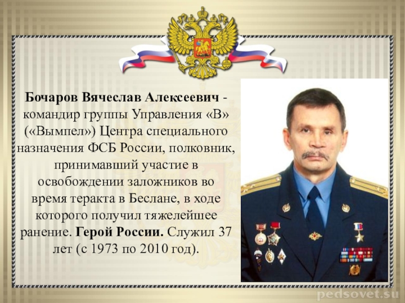 На Аллее Героев Рязанского высшего воздушно-десантного училища установлен бюст Героя России Бочарова Вячеслава Алексеевича.