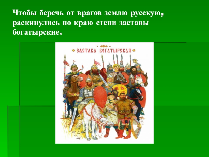 Чтобы беречь от врагов землю русскую, раскинулись по краю степи заставы богатырские.