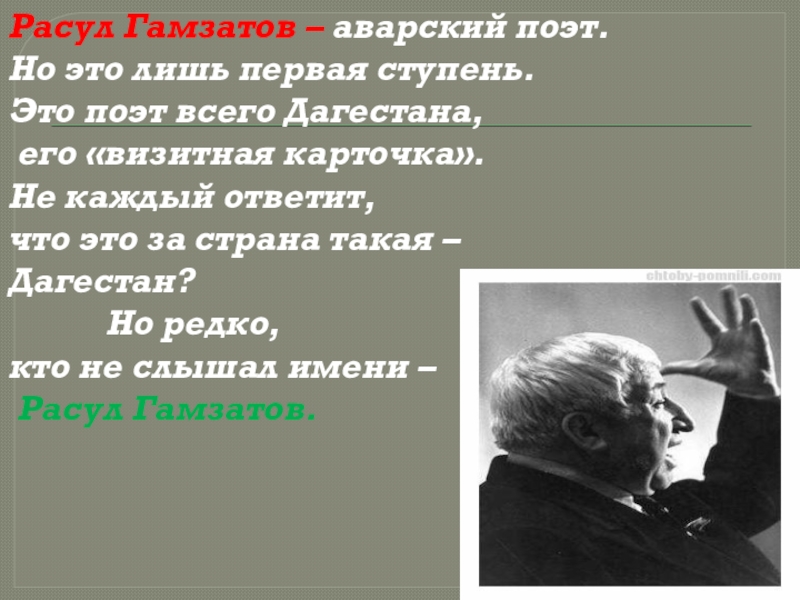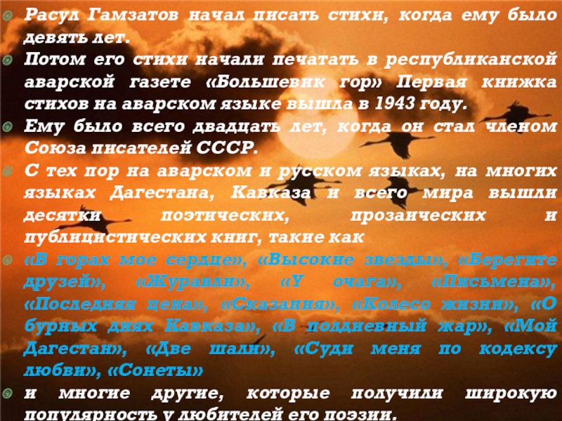 Слайд 9Расул Гамзатов начал писать стихи, когда ему было девять лет.