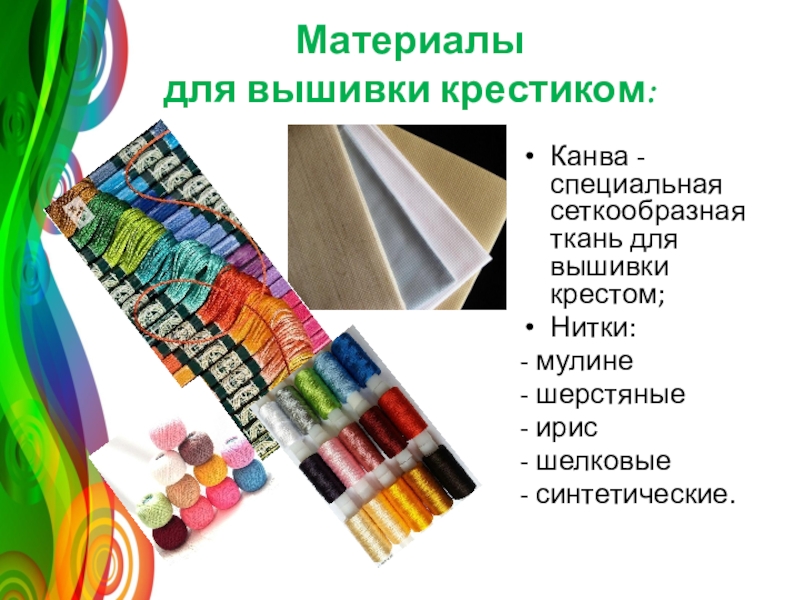 Канва - специальная сеткообразная ткань для вышивки крестом;
