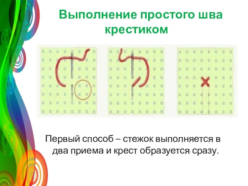 отдельных стежков выполняются в ряд (по горизонтали, как правило), а затем в обратном направлении выполняются вторые элементы стежков.