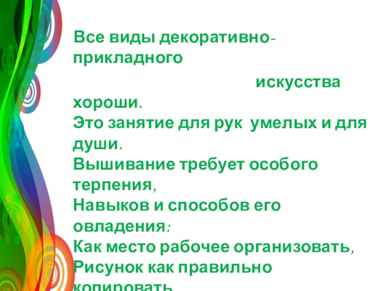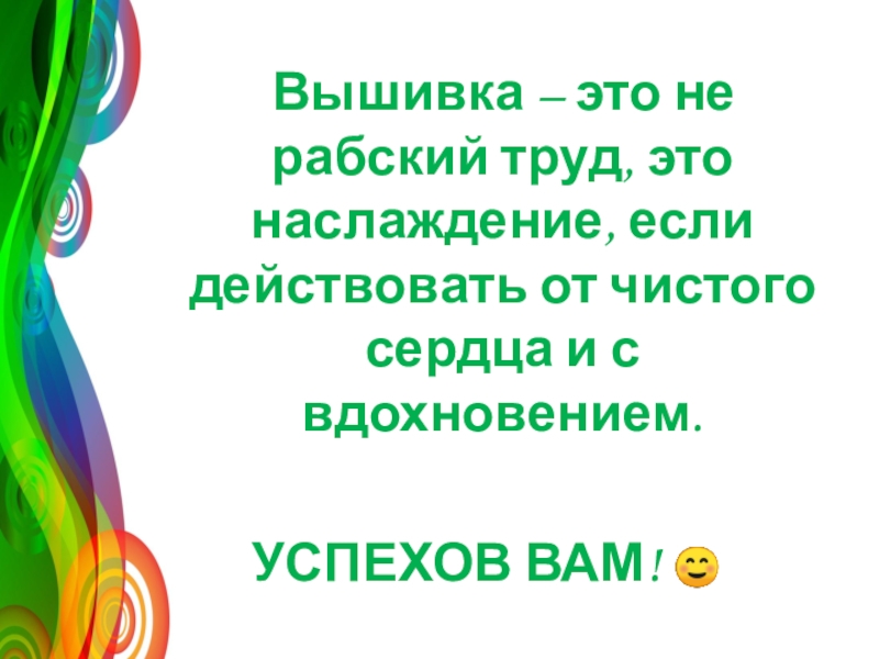 Слайд 23 Вышивка – это не рабский труд, это наслаждение, если