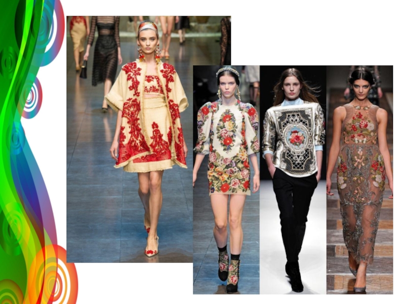 Слайд 8 Вышивку располагали по вороту, рукавам и