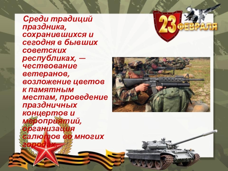 Слайд 9 День защитника Отечества - праздник прежде всего военных. Но