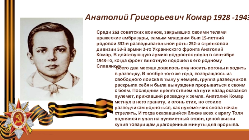 Анатолий Григорьевич Комар 1928 -1943 г.
