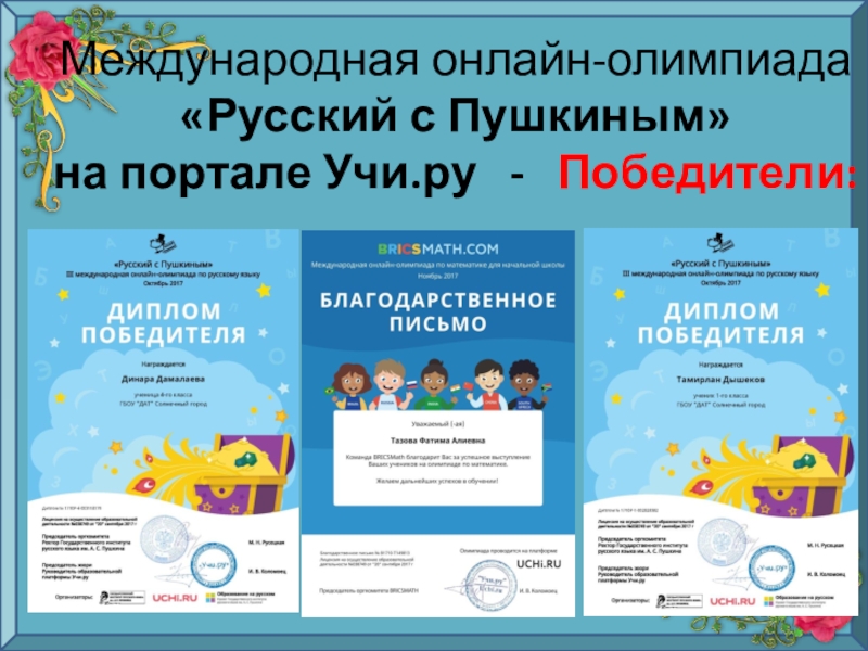 Это сайт презентаций, где можно хранить и обмениваться своими презентациями, докладами, проектами, шаблонами в формате PowerPoint с другими пользователями. Мы помогаем школьникам, студентам, учителям, преподавателям хранить и обмениваться учебными материалами.