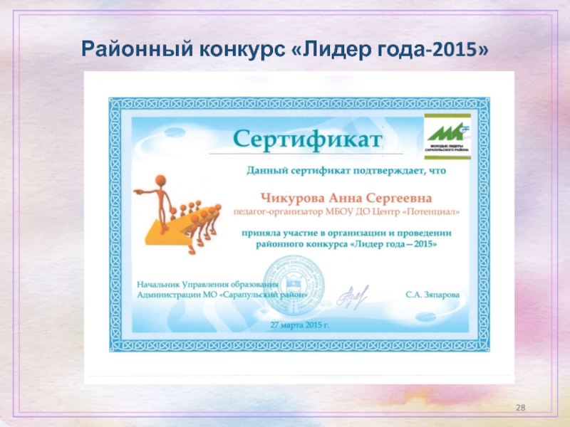 Слайд 28Районный конкурс «Лидер года-2015»