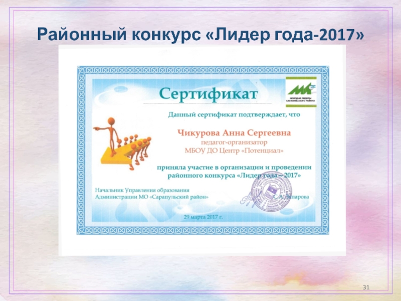 Слайд 31Районный конкурс «Лидер года-2017»
