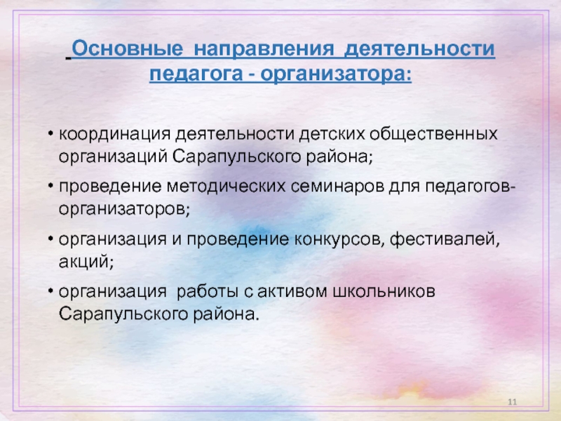 Слайд 11 Основные направления деятельности