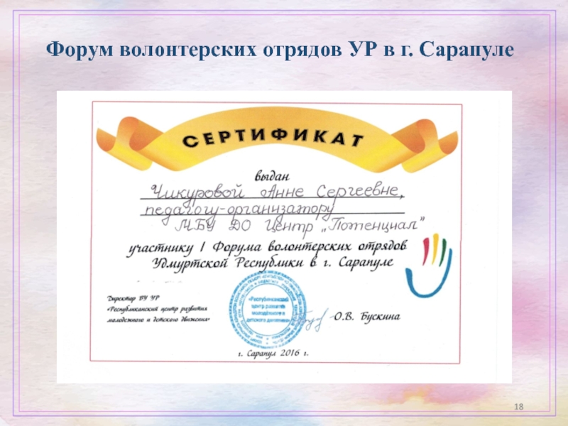Слайд 18Форум волонтерских отрядов УР в г. Сарапуле