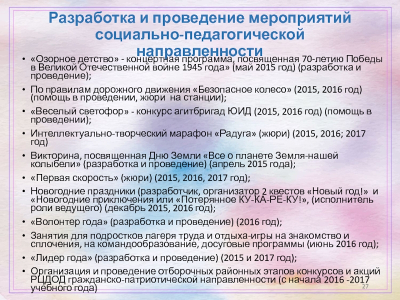 Слайд 27Разработка и проведение мероприятий