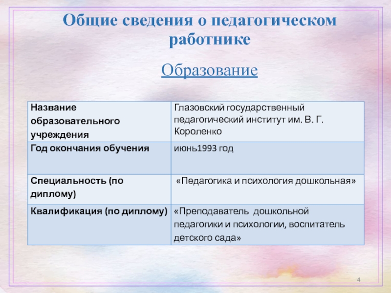 Слайд 4Общие сведения о педагогическом работнике