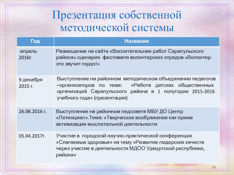 Слайд 38Презентация собственной методической системы