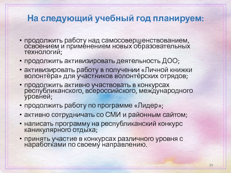 На следующий учебный год планируем: