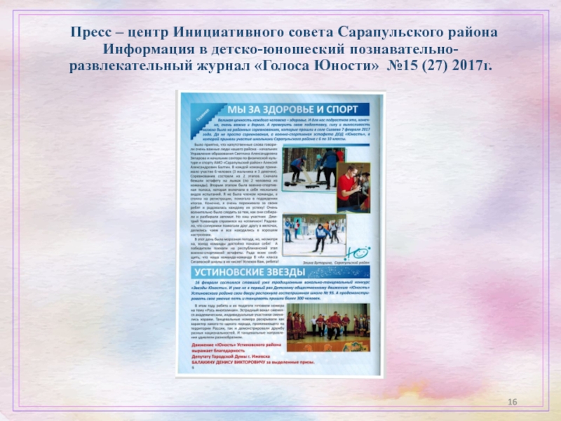 Слайд 16 Пресс – центр Инициативного совета Сарапульского района