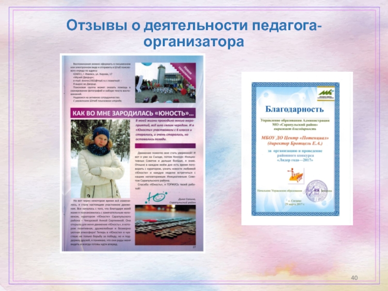 Слайд 40Отзывы о деятельности педагога-организатора