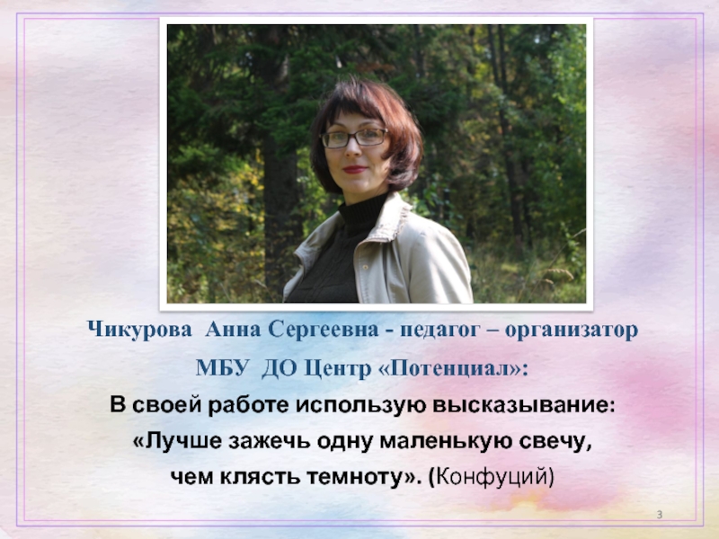 Слайд 3Чикурова Анна Сергеевна - педагог – организатор