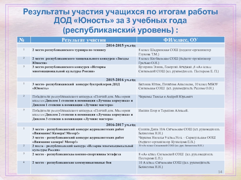 Слайд 14Результаты участия учащихся по итогам работы