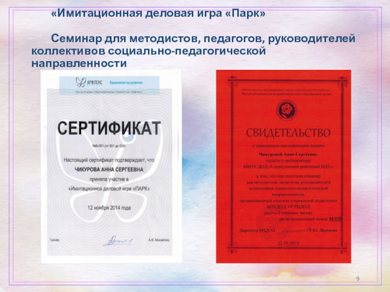 Слайд 9 «Имитационная деловая игра «Парк»