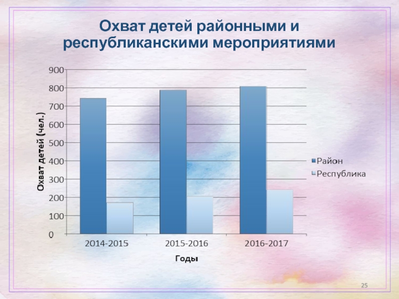 Слайд 25Охват детей районными и республиканскими мероприятиями