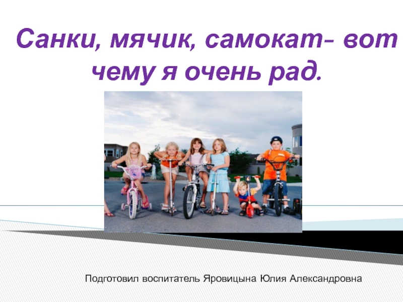 Санки, мячик, самокат- вот чему я очень рад.Подготовил воспитатель Яровицына Юлия Александровна