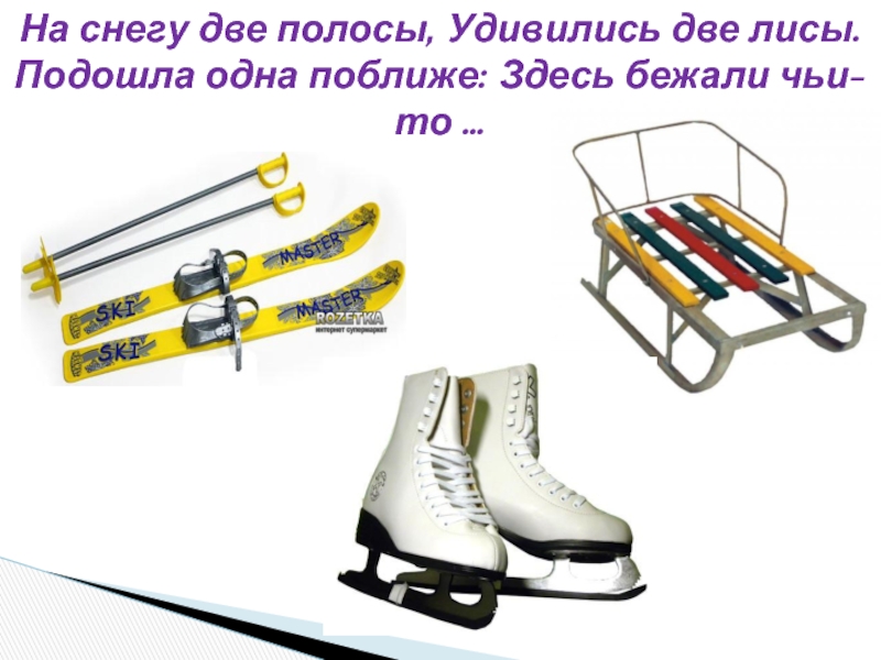 На снегу две полосы, Удивились две лисы. Подошла одна поближе: Здесь бежали чьи-то …