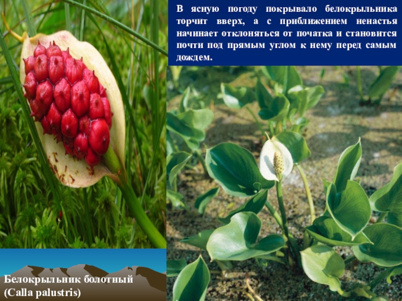 Слайд 31В ясную погоду покрывало белокрыльника торчит вверх, а с приближением ненастья