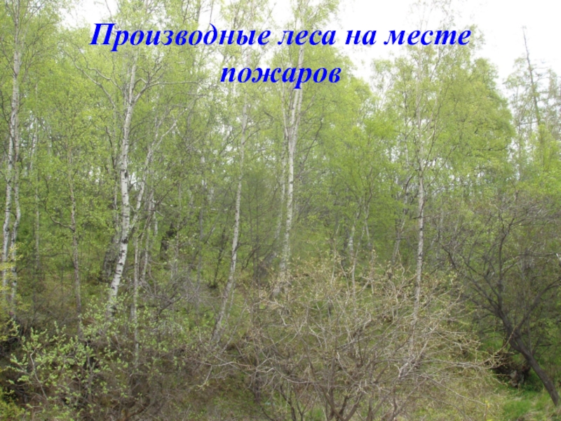 районов Восточной Сибири. Причина этого кроется прежде всего в повышенном количестве выпадающих в горах осадков. Пожары на больших площадях возникают лишь в годы сильных засух. Поэтому в высокогорьях Прибайкалья вполне возможно найти участки лесной растительности, не пройденные пожаром в течение нескольких столетий. В тоже время леса предгорий неоднократно подвергались воздействиям огня и многие коренные хвойные сообщества сменились производными - березовыми