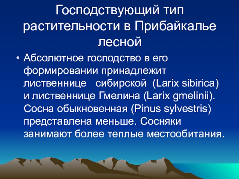 Слайд 5Господствующий тип растительности в Прибайкалье лесной
