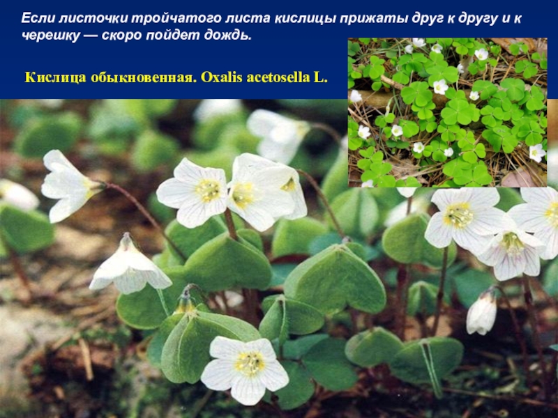 Слайд 33Если листочки тройчатого листа кислицы прижаты друг к другу и к