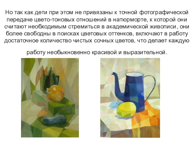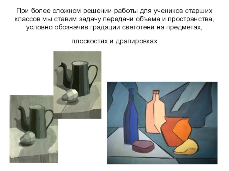 Декоративная живопись, как и живопись академического плана, требует работы тоном и владения формой, умения в построении сложных колористических эффектов, т.е. основные живописные цели, главные задачи станковой и декоративной живописи едины.