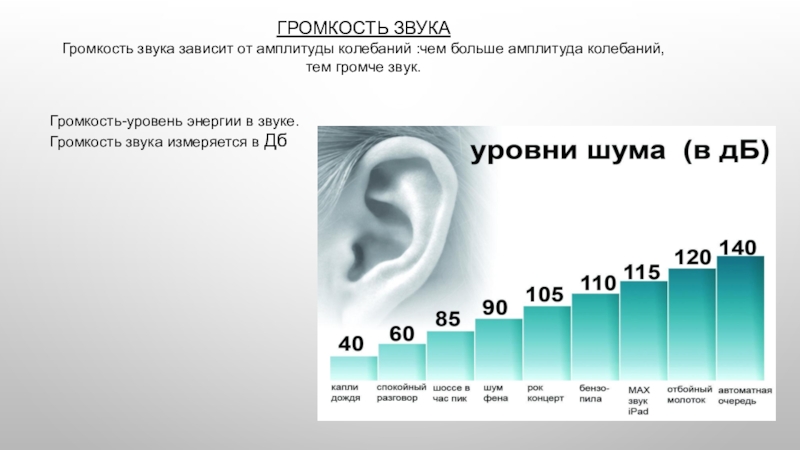 Слайд 8ГРОМКОСТЬ ЗВУКА