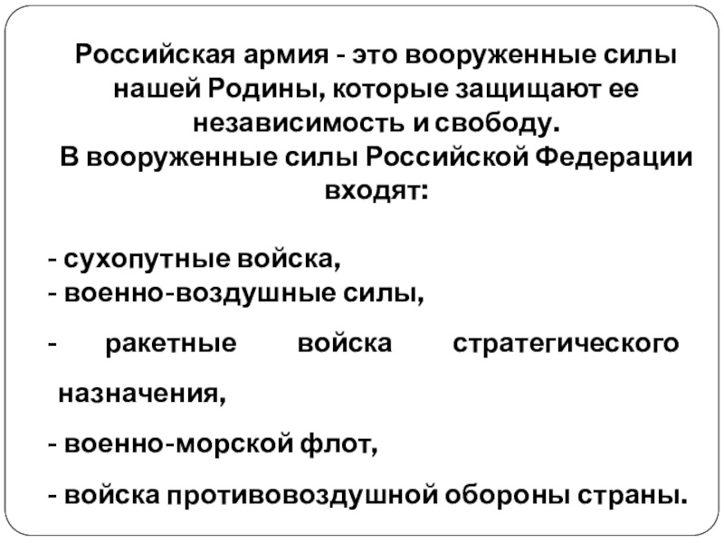 Российская армия - это вооруженные силы нашей Родины, которые защищают ее