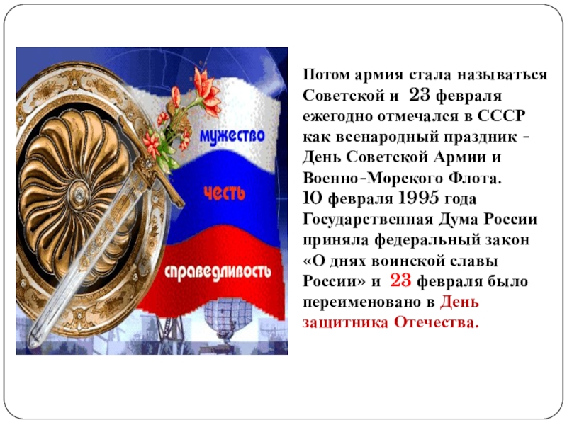 Слайд 7Потом армия стала называться Советской и 23 февраля ежегодно отмечался в